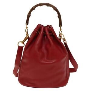 GUCCI Bamboo Hand Bag Leather Red Gold 001 2040 001 2040