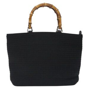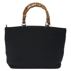 GUCCI Bamboo Hand Bag Nylon Black Silver 000 2058 0540 5 Auth ep9267