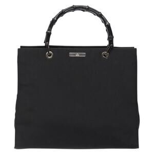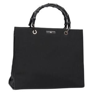 GUCCI Bamboo Hand Bag Nylon Black Silver 002 002