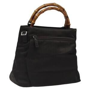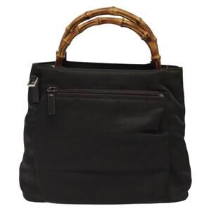 GUCCI Bamboo Hand Bag Nylon Brown Silver 002 2058 0508 5