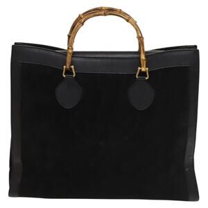 GUCCI Bamboo Hand Bag Suede Black Gold 002 1186 002 1186