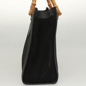 GUCCI Bamboo Hand Bag Suede Black Gold