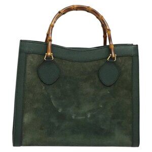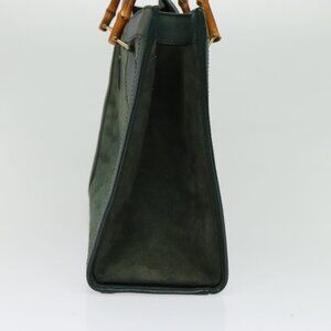 GUCCI Bamboo Hand Bag Suede Green Gold