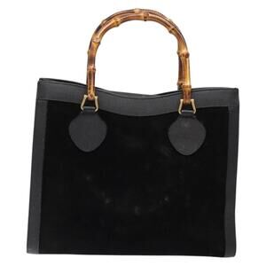 GUCCI Bamboo Hand Bag Suede Leather Black Gold 002 1186 002 1186
