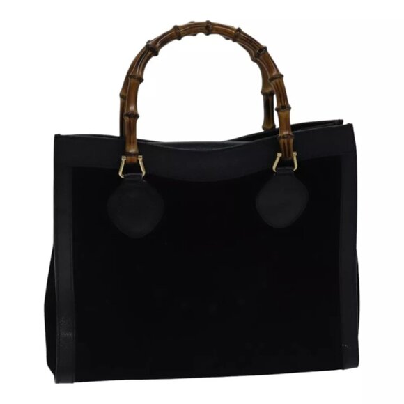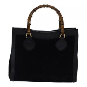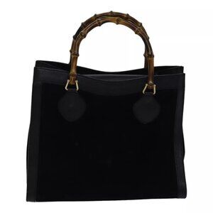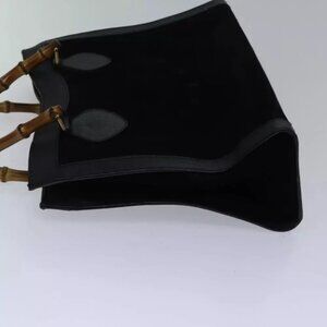 GUCCI Bamboo Hand Bag Suede Leather Black Gold 002 1186 0260 Auth ep5511