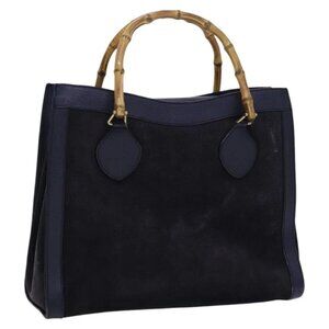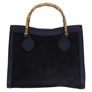 GUCCI Bamboo Hand Bag Suede Leather Navy Gold Auth ep7759