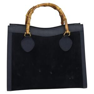 GUCCI Bamboo Hand Bag Suede Navy Gold 002 123 002 123