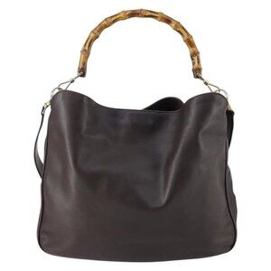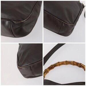 GUCCI Bamboo Shoulder Bag Leather 2way Brown Gold