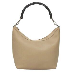 GUCCI Bamboo Shoulder Bag Leather Beige