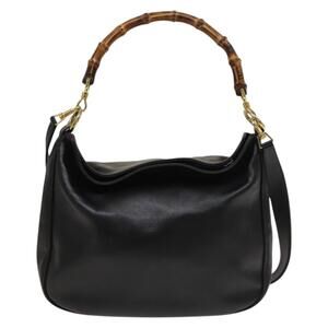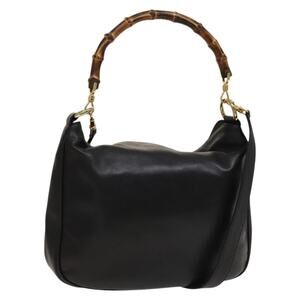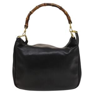 GUCCI Bamboo Shoulder Bag Leather Black Gold 001 1781 001 1781