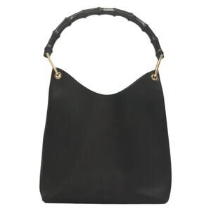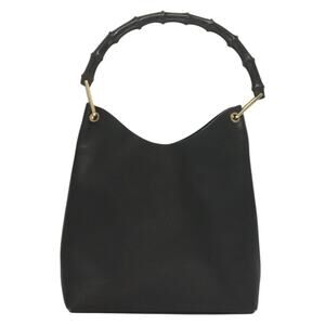 GUCCI Bamboo Shoulder Bag Leather Black Gold 001 2113 001 2113
