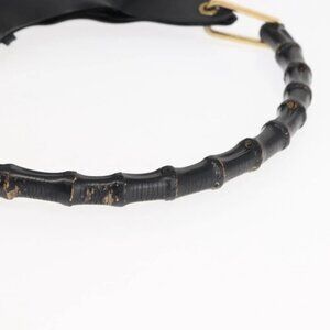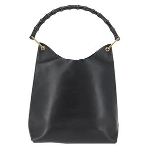 GUCCI Bamboo Shoulder Bag Leather Black Gold
