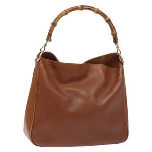 GUCCI Bamboo Shoulder Bag Leather Brown Gold 001 1448 001 1448