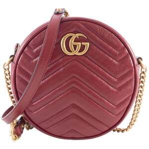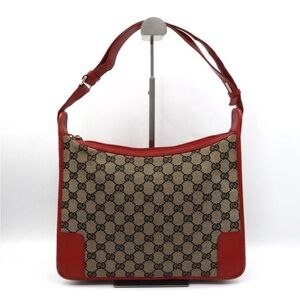 GUCCI Bamboo Shoulder Bag Leather Red Gold Auth 145209