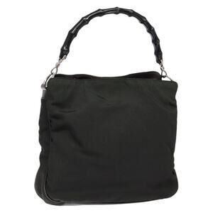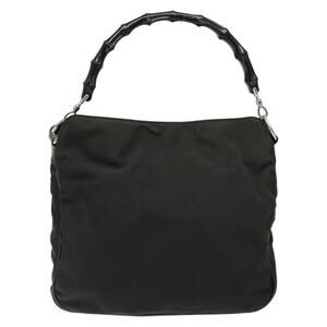 GUCCI Bamboo Shoulder Bag Nylon Khaki Silver 001 001