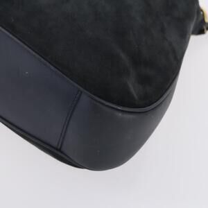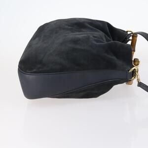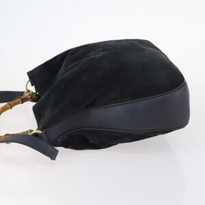 GUCCI Bamboo Shoulder Bag Suede 2way Black Gold 001 1781 1577 Auth 141499