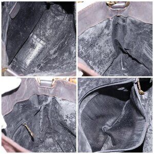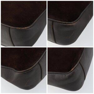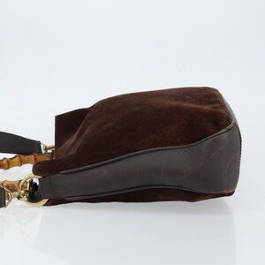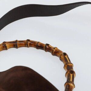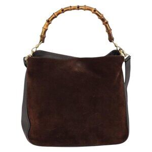GUCCI Bamboo Shoulder Bag Suede 2way Dark Brown Gold Auth