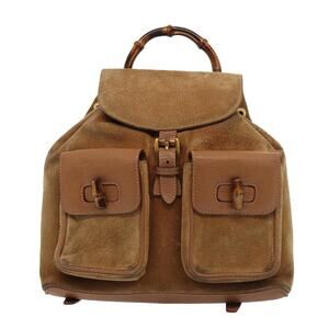 GUCCI Bamboo Shoulder Bag Suede Brown Gold 003 2058 003 2058