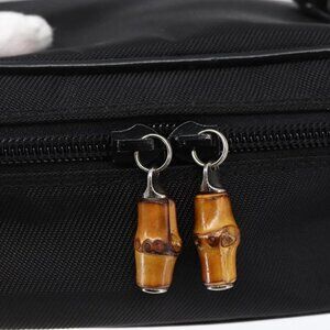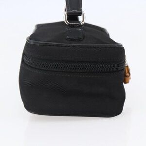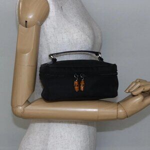 GUCCI Bamboo Vanity Hand Bag Nylon Black Silver Auth