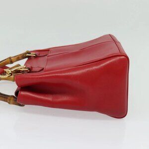 GUCCI Bamboo Web Sherry Line Hand Bag Leather Red Gold 000 122 0316 Auth th6277