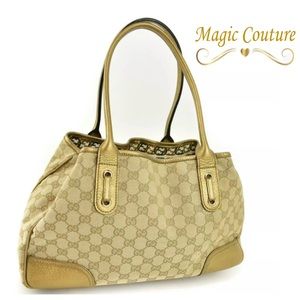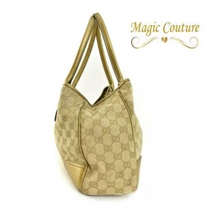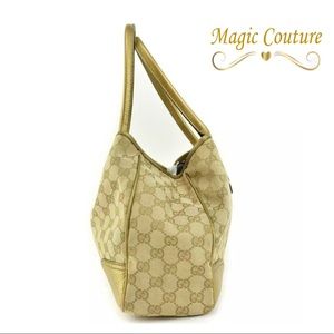 GUCCI: Beige "GG" Logo & Metallic Gold Leather Tote Bag💛⭐️💛