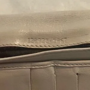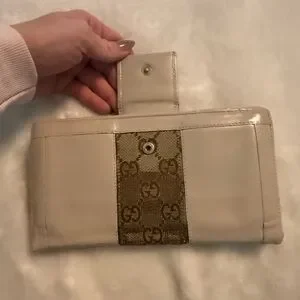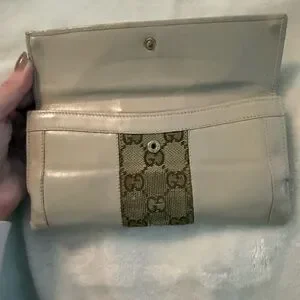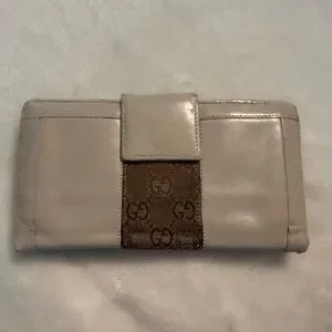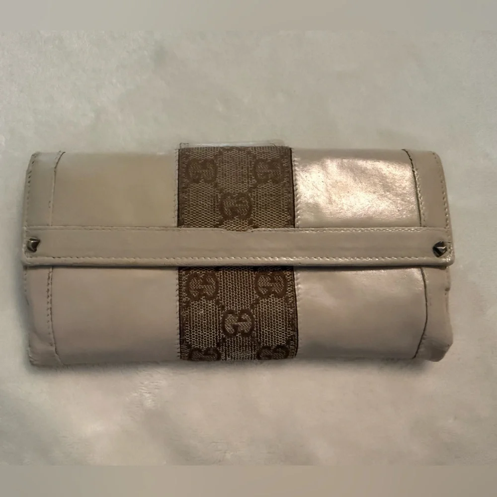 Restored Gucci Beige leather wallet. Snaps work perfectly and hold. ID number is 1299282667 from what I can tell. It is shown in photos. Please review photos for full condition and reach out with questions or concerns.
