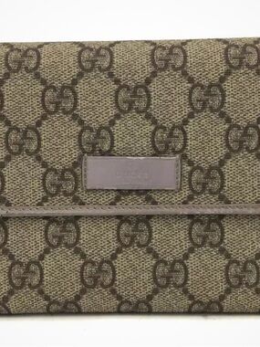 GUCCI Beige GG Monogram Leather Bifold Long Wallet Purse Accessories Italy