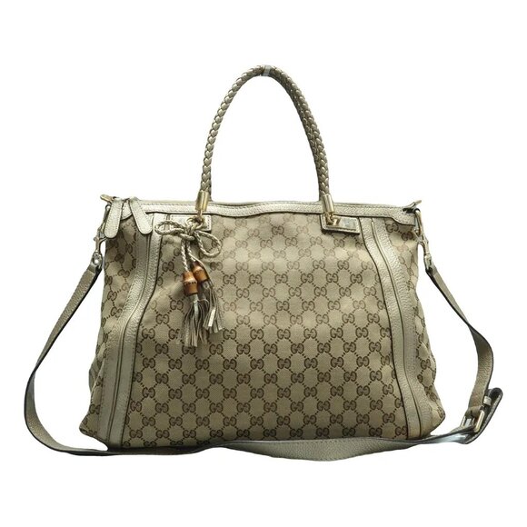 GUCCI Bella Brown Cloth Satchel 615-021425
