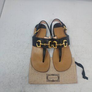 GUCCI Black Baby Horsebit Thong Flat Leather Sandal