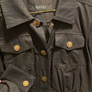 Gucci Dress with gold tone Gucci buttons and elastic black belt. Size UK 40