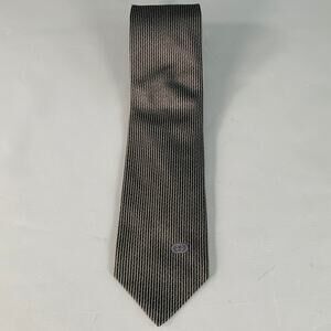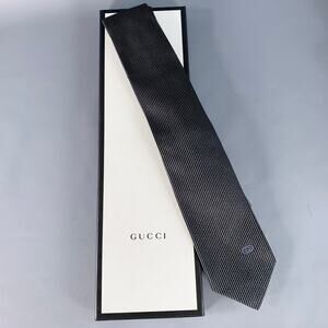 GUCCI necktie in a black and grey silk featuring a stripe pattern. Comes with box. Made in Italy.