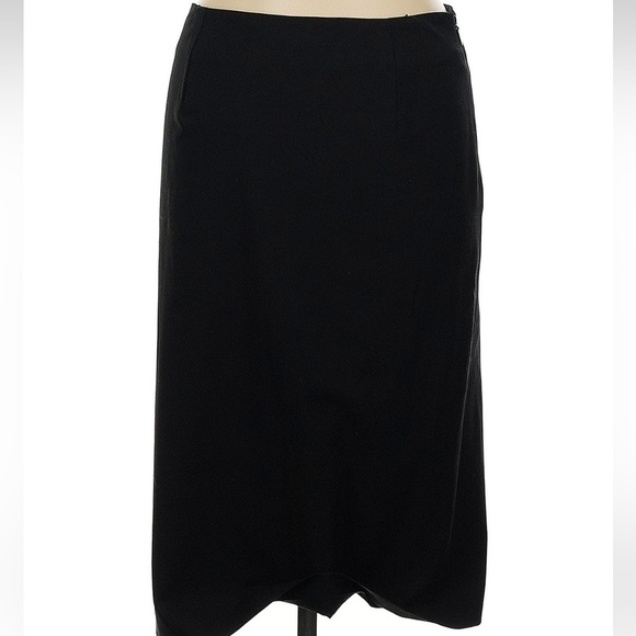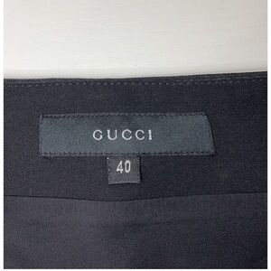 GUCCI Black Knee-Length Wool Cashmere Pencil Skirt with Leather Strip • 40