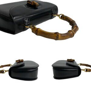 GUCCI Black Leather Bamboo Tote Bag