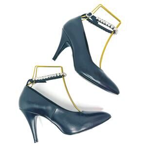 GUCCI Black Leather Crystal Embellished Ankle Strap Pointed Toe Pump Heel EU36.5