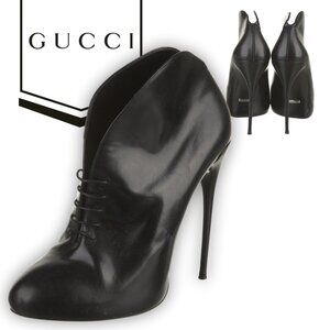 GUCCI Black Leather Lace Up Ankle Boot. Size 9 (Designer Size 39).