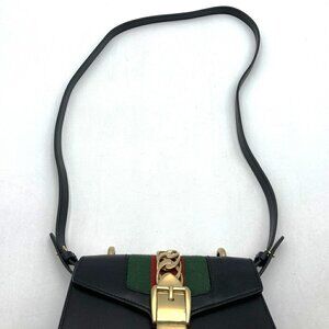 GUCCI Black Leather Sylvie Shoulder Bag