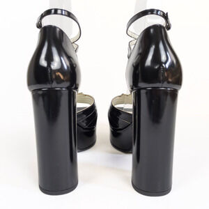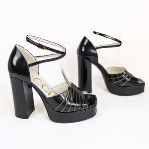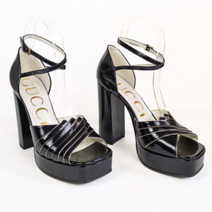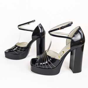 GUCCI Black Medea 95mm Deco Patent Platform Heeled Sandals Women's EU 36.5