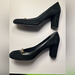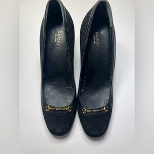 GUCCI Black Suede Heel Pump with Gold Horsebit Detail size 40.5