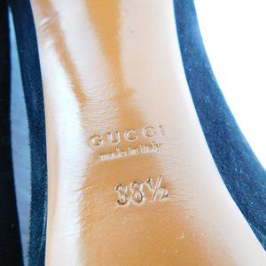 GUCCI Black Suede Leather Peep Toe Platform Heel Pumps 38.5