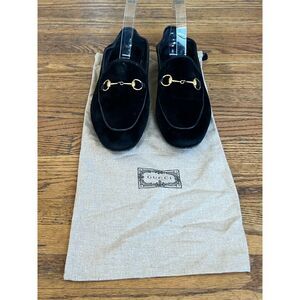 GUCCI Black Velvet Suede Horsebit Slip On Loafer Shoes Women's Size EU 38 US 7.5