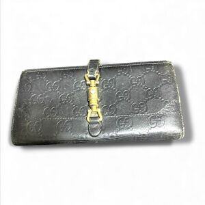 GUCCI Blade Embroidery Long Wallet Leather Silver Black Auth
