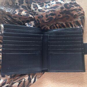 Front coin, interior paper cash & credit card compartments slots, gold-tone front interlocking G logo