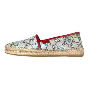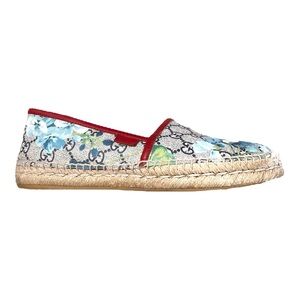 GUCCI Bloom Blue Supreme Logo Monogram Floral Espadrilles Flats EU 37.5 US 7.5