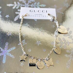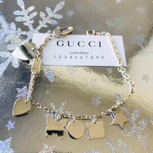 GUCCI Bracelet Sterling Silver Star Hearts Butterfly Charms w Gucci Box
