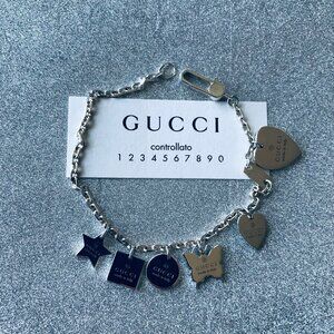 GUCCI Bracelet Sterling Silver 925 Star Hearts Butterfly Charms