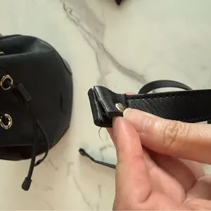 Please note: I cut the original non-removable shoulder strap so I could use my own strap. The original strap is included, but it would need to be repaired by a cobbler if you’d like to restore it. Alternatively, the bag works perfectly with a detachable shoulder strap.