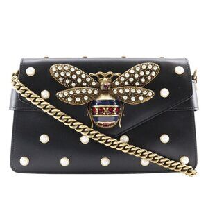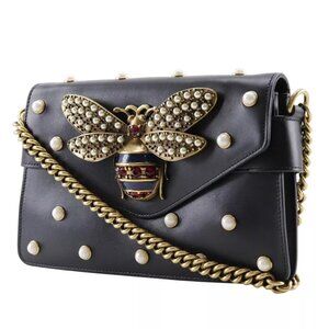 GUCCI Broadway Shoulder Bag 453778 ChainShoulder Pearl & Bee black Calfski...
