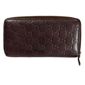 GUCCI Brown Leather Authentic Guccissima Monogram Long Zippered Wallet