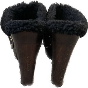 GUCCI Brown Suede Leather Fur Lined Platform Wood Stud Clogs Heels Size 40