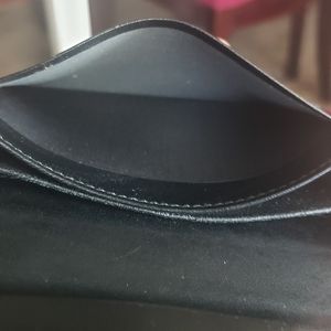 This is an Authentic Pre-owned Black Gucci Card Case with Olive green and red web design garter snap closure. Does have light scratches, rubs wrinkles to leather. No major damages. Contains 5 card holders and very spacious it can fit more cc in each pockets.